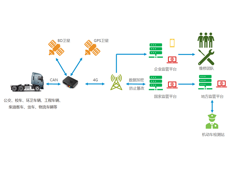 該產(chǎn)品采用車規(guī)級設(shè)計,集J1939CAN總協(xié)議數(shù)據(jù)、國密SM2加密、4G蜂窩網(wǎng)絡(luò)、GPS+北斗衛(wèi)星定位、G-SENSOR及FLASH存儲等功能為一體,安裝應(yīng)用在重型車上用于采集、存儲和傳輸車輛OBD信息和發(fā)動機排放數(shù)據(jù)。